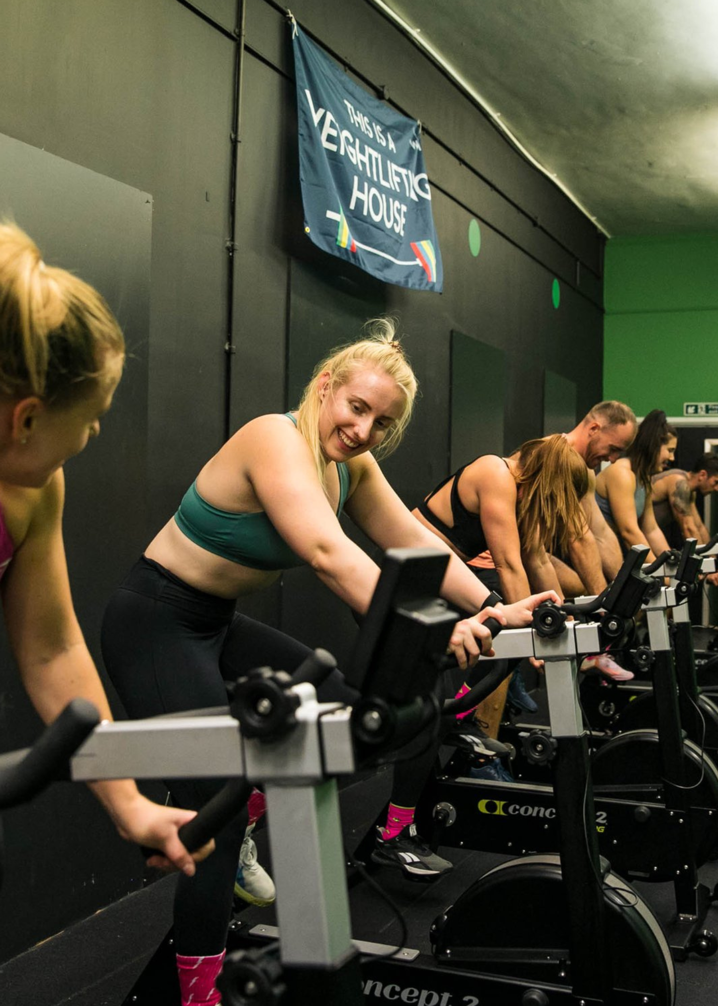 Just comfortable workout clothes, trainers, and a water bottle. We’ll provide everything else you need!