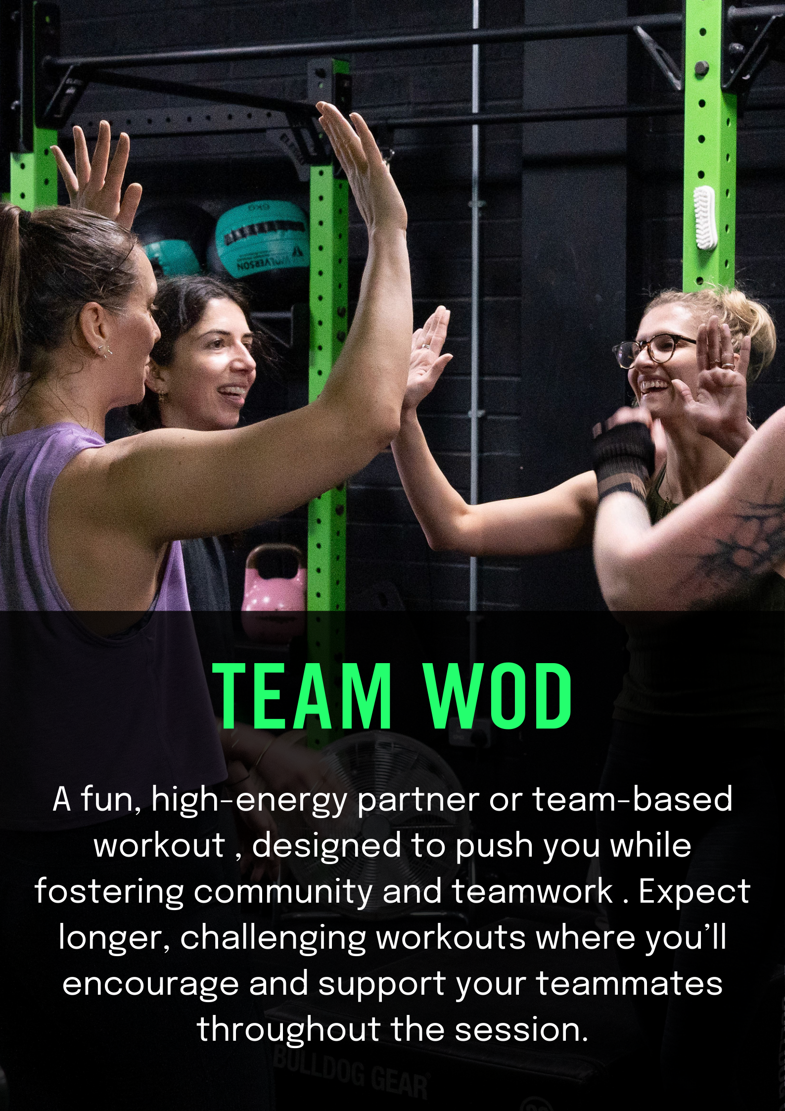 A fun, high-energy partner or team-based workout , designed to push you while fostering community and teamwork . Expect longer, challenging workouts where you’ll encourage and support your teammates throughout the session.